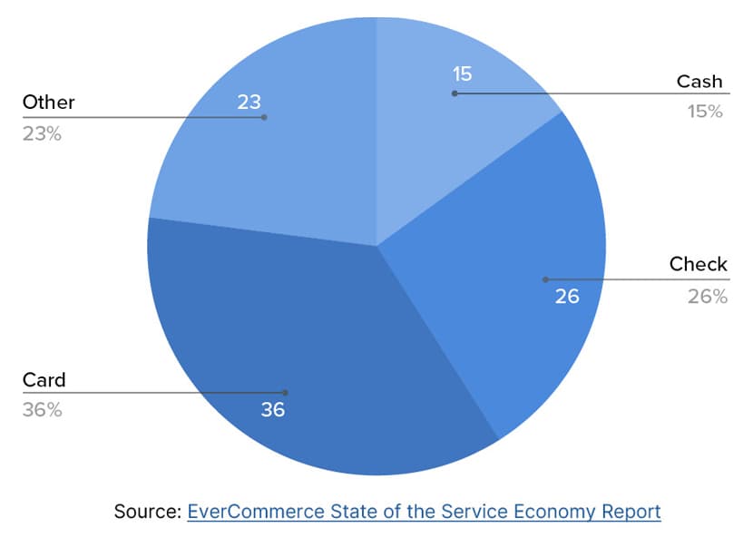 The EverCommerce State of the Service Economy Report asked service-based small business owners how their customers usually pay for their services. The accompanying chart offers some insights.