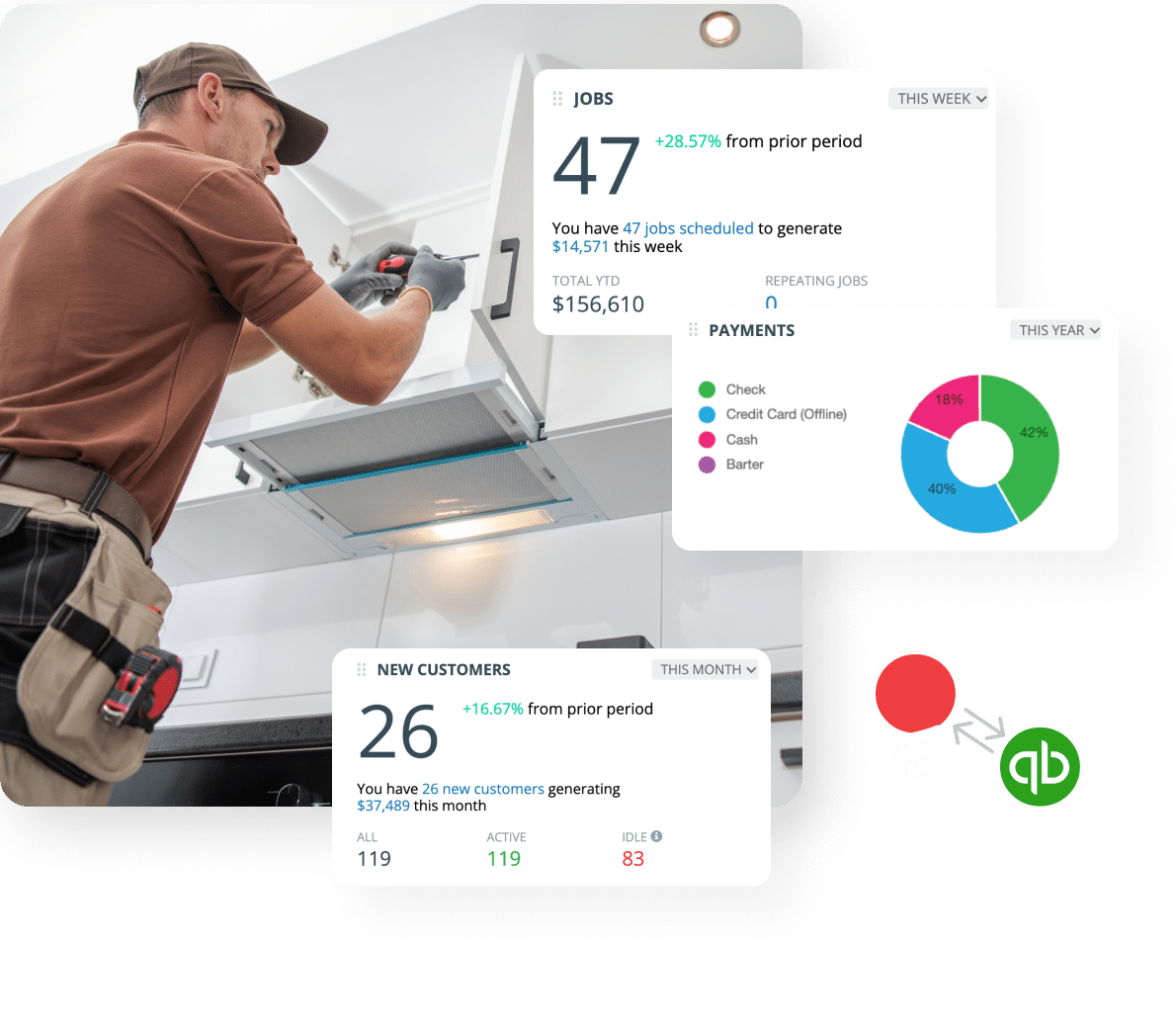 - Bring accounting and service together with QuickBooks integration